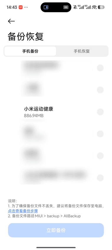 引言最近在做心率统计,数据源由小米运动健康提供,但是设备没有root,读取不到数据库文件,所以用这种投机的方法进行获取,并且同步到外部系统中。备份打开设置...